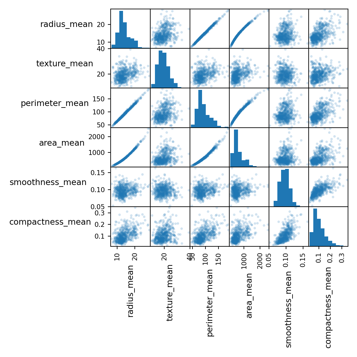 X[["radius_mean", "area_mean", "smoothness_mean"]].describe() radius_mean area_mean smoothness_mean